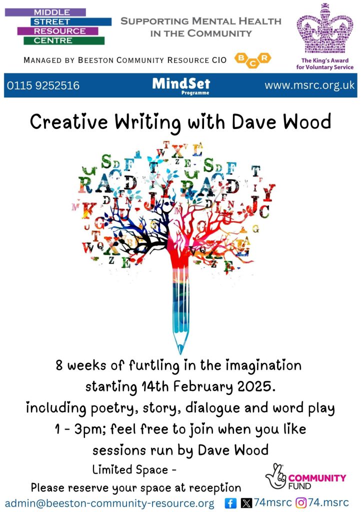 Our creative writing group will be joined by local wordsmith Dave Wood for 8 weeks from 14th February. LIMITED SPACE